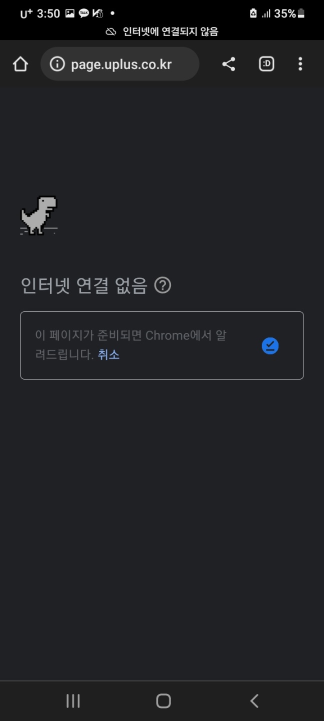 데이터를 끄고 나서 크롬을 접속해보면 아래와 같이 공룡이 나옵니다.