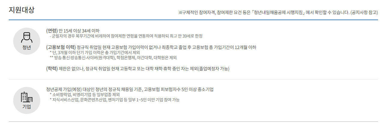이 제도는 근로계약 체결일 현재 기준으로 15~34세 이하인 자에게 제공되며