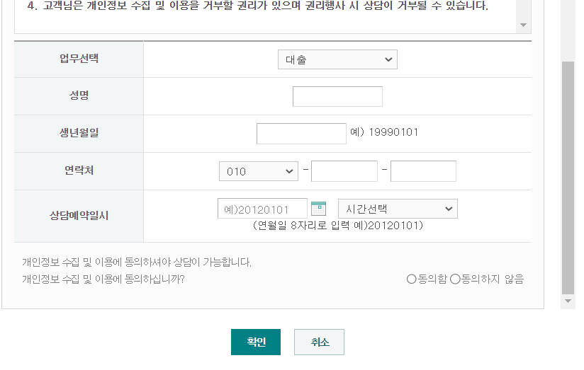 개인정보 수집 등 동의 하시고 인적사항을 남기면 상담이 가능합니다.