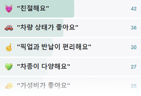 - 다양한 차량 종류와 모델을 선택할 수 있습니다. 승용차, SUV, RV, 전기차 등 원하는 차량을 쉽게 찾을 수 있습니다.