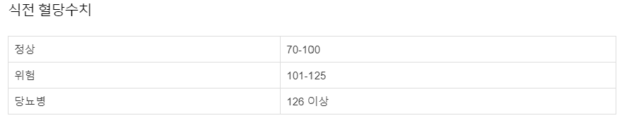 식전 혈당 정상 범위
