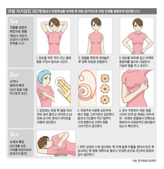 유방 통증(가슴통증)의 유방암 자가진단법 원인 증상 치료방법