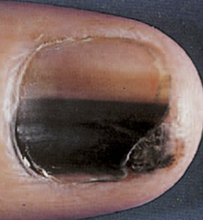 - 부서지거나 깨진 손톱: 손톱 흑색종은 손톱의 구조를 약화시키기 때문에 손톱이 부서지거나 깨질 수 있습니다.