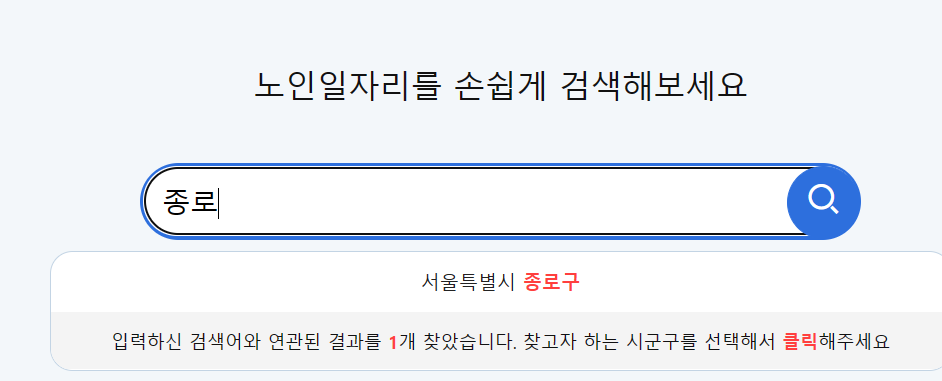 종로라고 검색을 해보면 서울특별시 종로구가 나오며 아래 사진과 같이 다양한 일자리를 확인 할 수 있습니다.