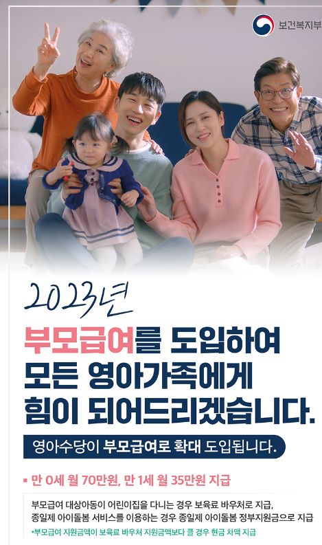 정부가 올해 1월부터 돌봄이 집중적으로 필요한 영아를 가정에서 맘편히 돌볼 수 있도록 부모급여를 지원하기로 했습니다.